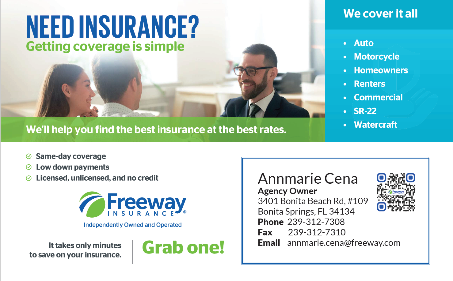 At Freeway Insurance, we combine experience, personalized service, and access to multiple carriers to deliver reliable coverage at competitive rates. Our bilingual team is committed to helping individuals, families, and business owners throughout Southwest Florida find insurance solutions that provide real protection and peace of mind.